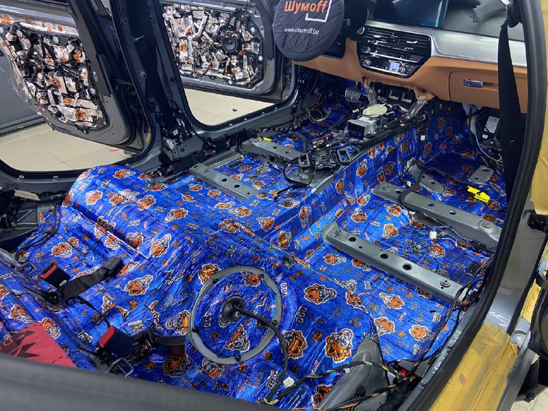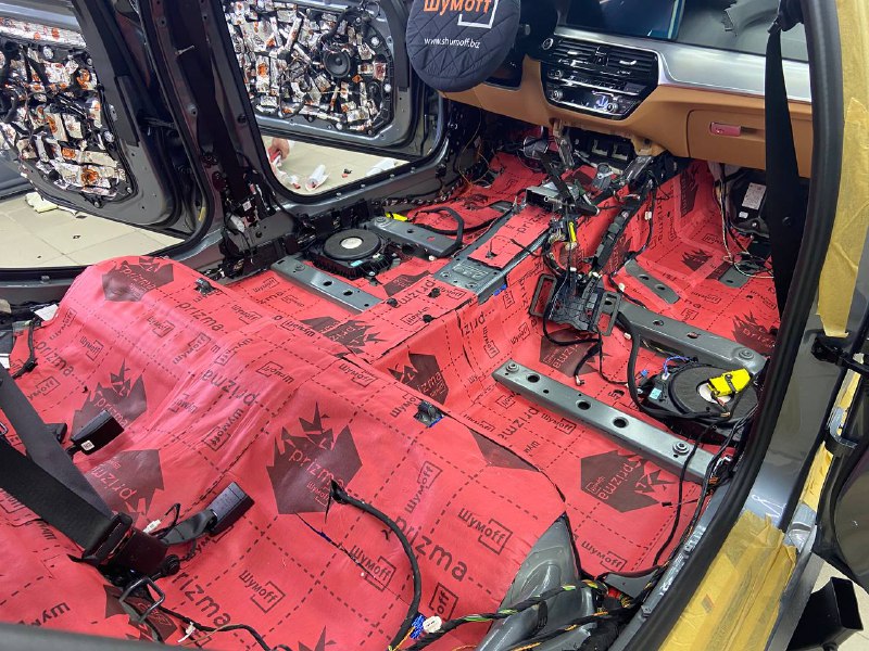 Сегодня мы подготовили фотоотчёт о комплексной шумоизоляции салона авто BMW 5 в пакете «Элит». Все описанные ниже работы были выполнены за 1 рабочий день, благодаря слаженной работе мастеров детейлинг-центра и предварительной подготовке материалов.