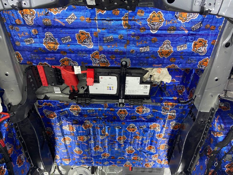 На внешний металл крышки багажника наносим виброизоляцию ШумоФФ Jack. На обшивку монтируем ШумоФФ Jack и шумопоглотитель Absorber A15. По канту обшивки и клипсы обрабатываем Шумофф Absorber 5. Проводку обрабатываем Шумофф Specific.