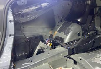 Второй слой – Шумофф Prizma шумоизолятор на основе вспененного каучука со звукоотражающей мембраной, это современный и технологичный материал который включает в себя сразу два слоя! Его мы применяем на всю плоскость пола салона и багажника в том числе и задние арки в багажнике. В задние крылья вторым слоем монтируем шумопоглотитель Шумофф Absorber А15, максимально закрывая всю плоскость крыла на сколько это позволяет конструкция автомобиля.