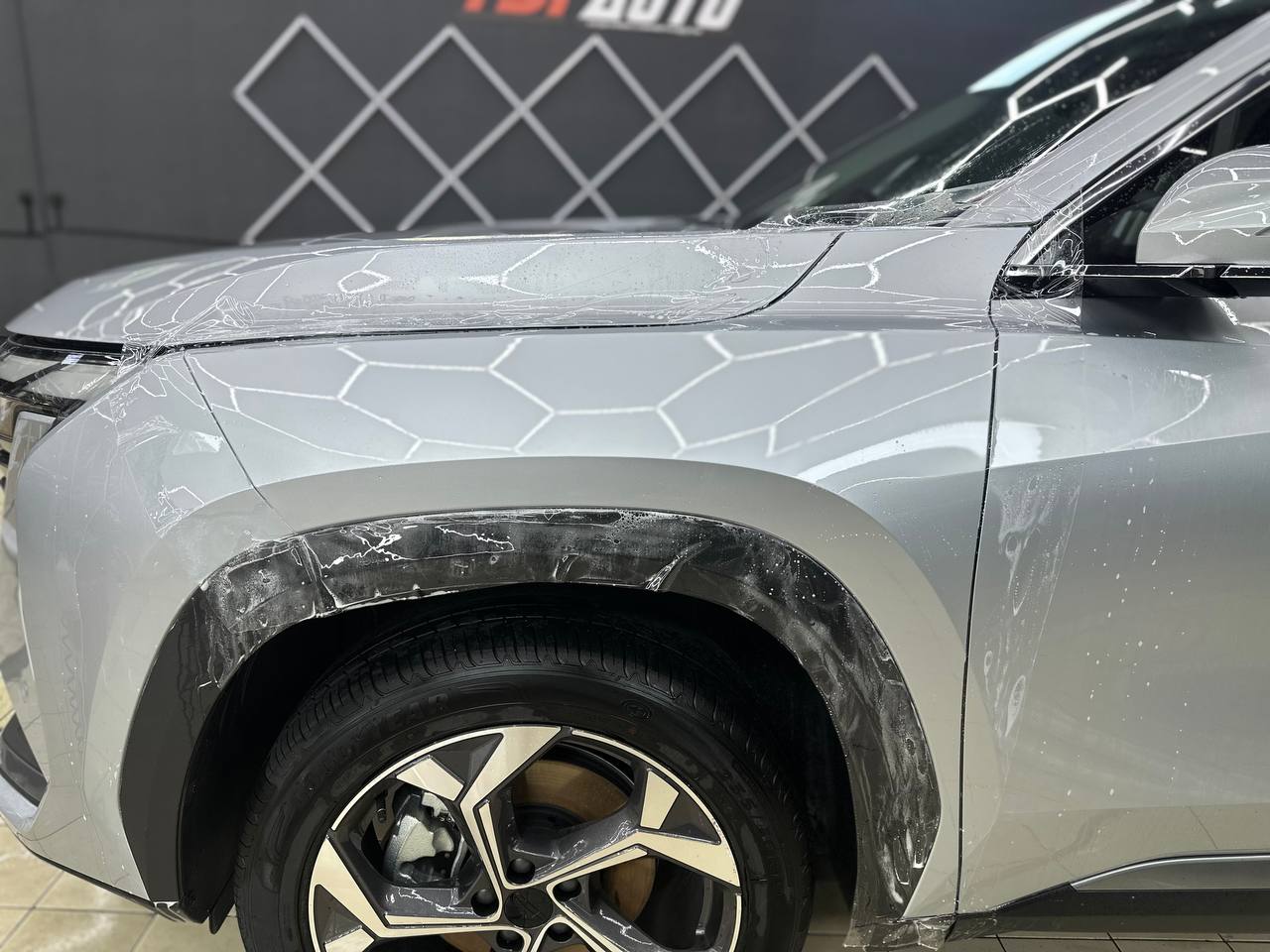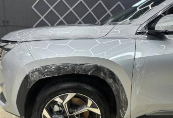 Geely Cityray приехал на работы по оклейке пленкой кузова. Команда TSIauto рекомендует бронировать пленкой наиболее уязвимые места новых автомобилей, это защитит элементы кузова от сколов, царапин и мелких ДТП. Пленку гораздо легче заменить в будущем, без поиска мест где смогут хорошо окрасить поврежденный элемент и при последующей продаже авто не будет торга с покупателем. На самом деле пленка имеет больше преимуществ, про которые мы расскажем ниже.
