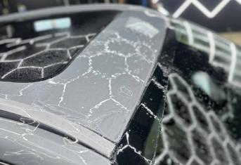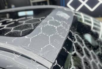 В работе применяем полиуретановую пленку NAR, толщиной 190 микрон. Эта пленка обладает функцией самовосстановления небольших царапин при высокой температуре. Клиент выбрал для своего автомобиля пакет Трасса Расширенный. Более подробно с пакетами оклейки вы можете ознакомится в соответствующем разделе на нашем сайте.