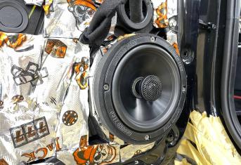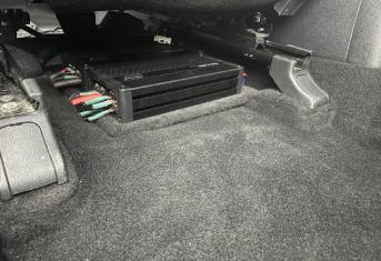 Спереди расположили компонентную акустику, в задние двери - коаксиальные динамики. Силовая проводка уложена по штатным местам, с обязательной установкой предохранителя под капотом. Оба усилителя мы расположили под передним правым сидением. Тем самым сохранили полезное пространство в багажнике.